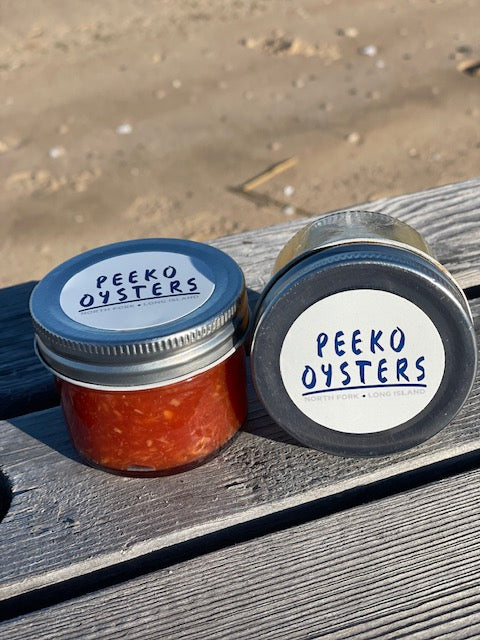 4 oz's of our official Peeko mignonette: a secret recipe tailored specifically to complement our oysters and the merroir of Little Peconic Bay. Serve with freshly-shucked raw Peekos over crushed...
